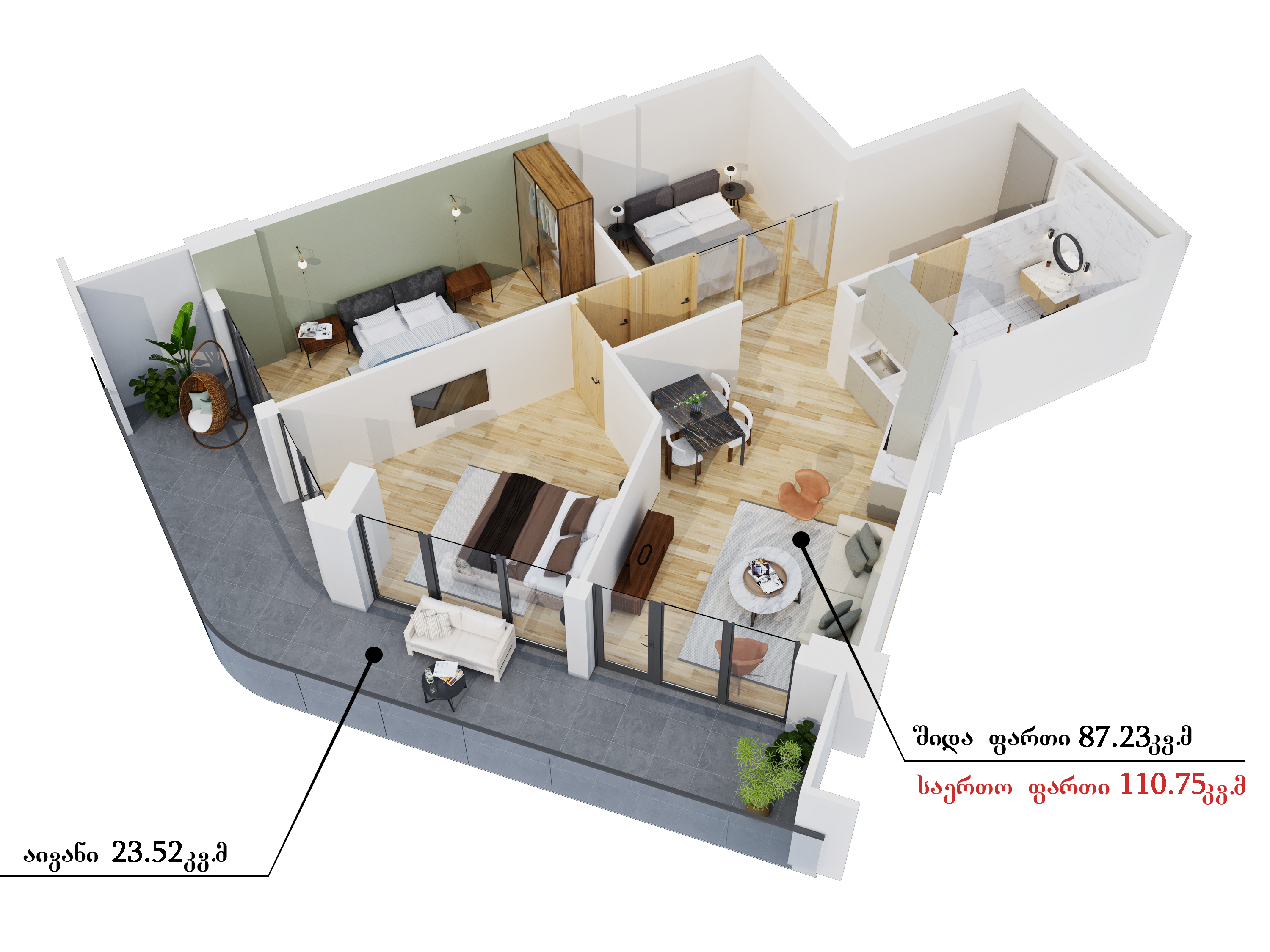 ბინებს ვაბარებთ თეთრი კარკასის კონდიციით.