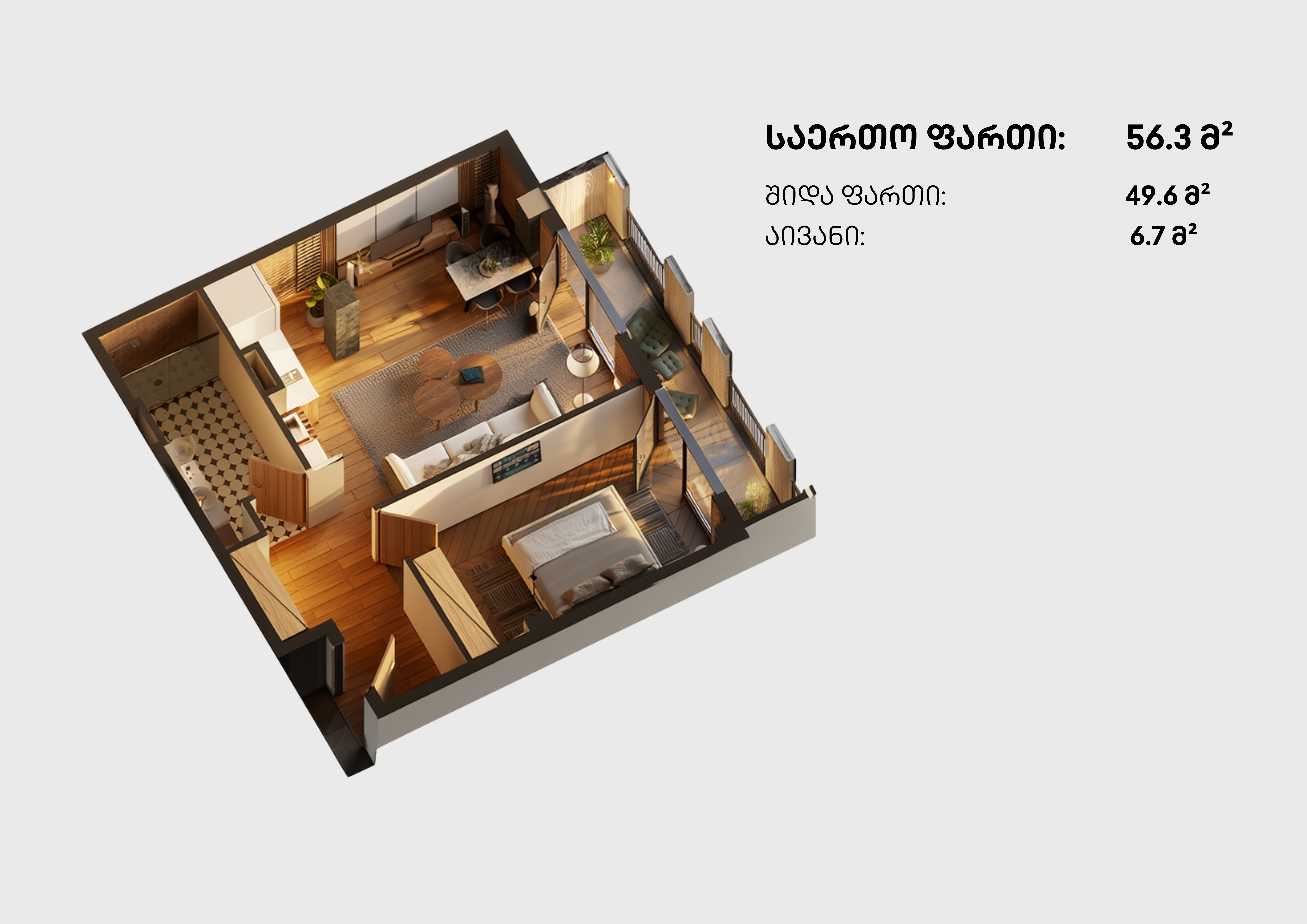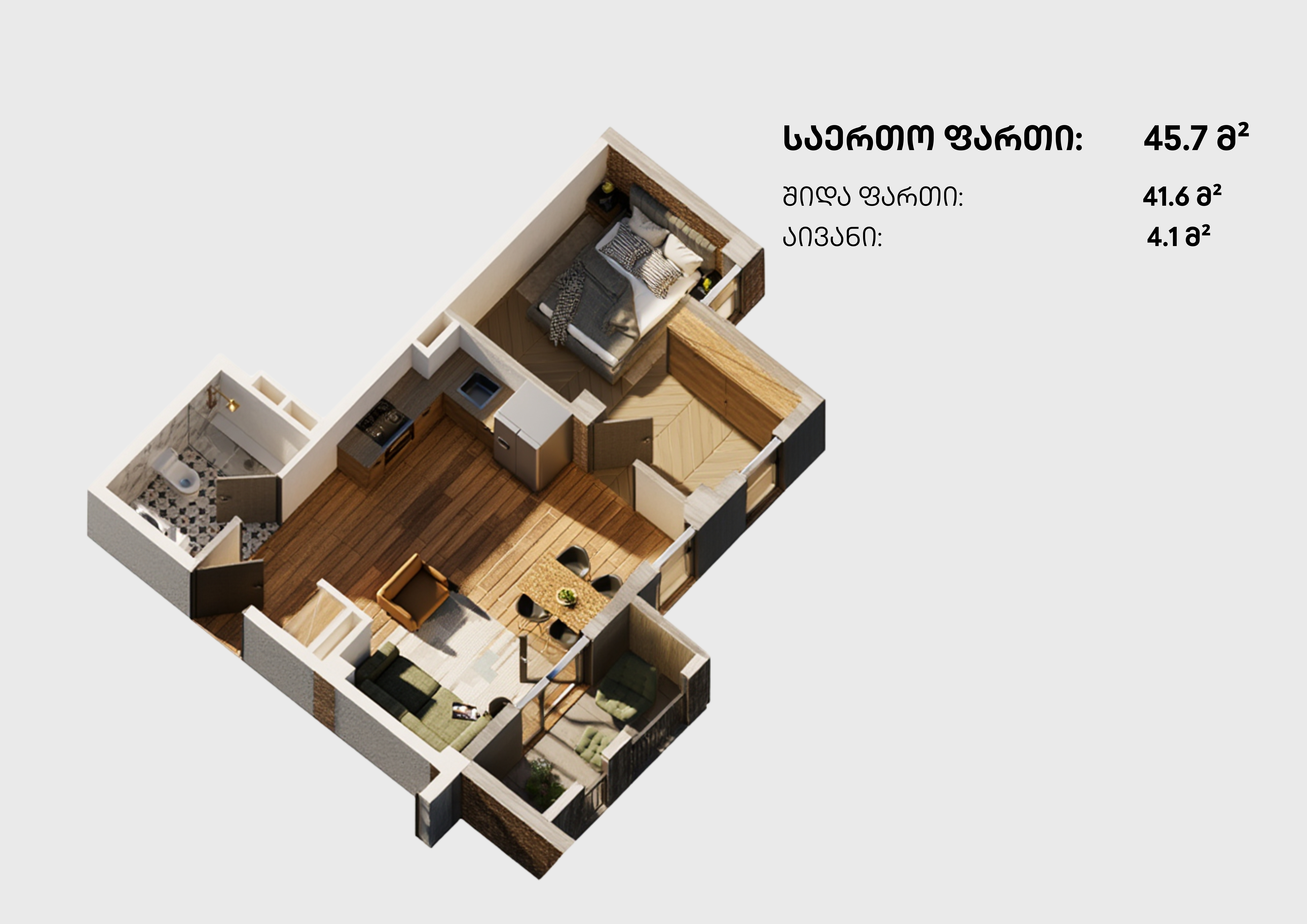 პროექტი გამორჩეულია როგორც დიზაინით, ასევე ბინების იდეალური გეგმარებით.